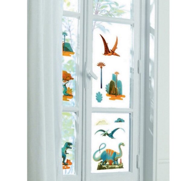Adesivi riposizionabili per finestra Dinosauri Djeco. Un bellissimo set da posizionare sulla finestra della cameretta.