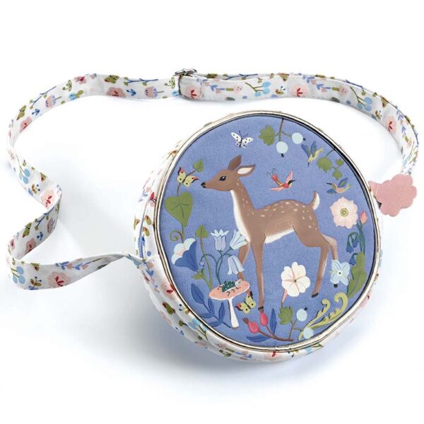 Una borsetta elegante e dal design ricercato, con una dolce illustrazione di un cerbiatto.