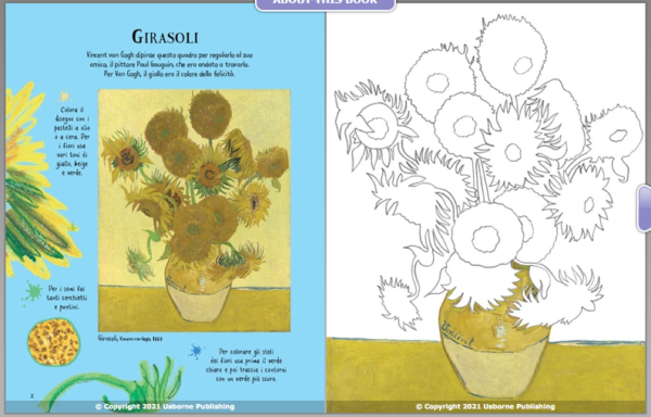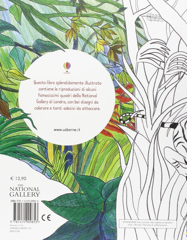 Un libro illustrato che riunisce le riproduzioni di alcuni famosissimi quadri della National Gallery di Londra, con bei disegni da colorare e oltre 100 adesivi da attaccare. Con link internet per esplorare l’argomento trattato. Età di lettura: da 6 anni.