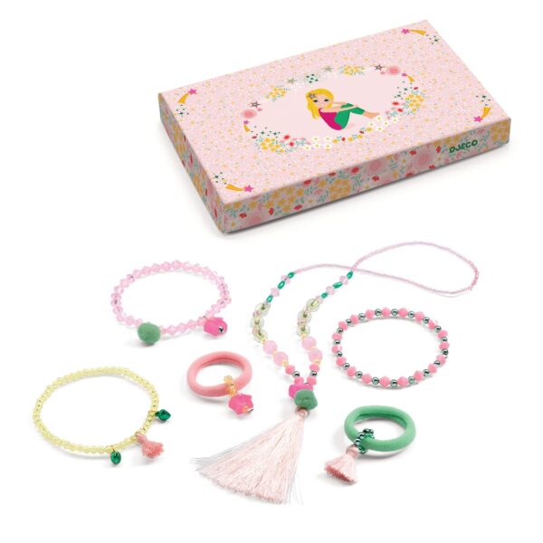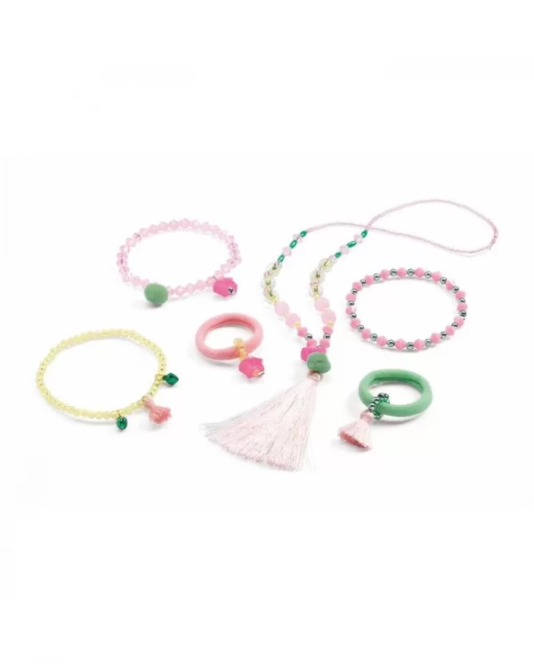 contiene 1 collana, 3 bracciali e 2 elastici.