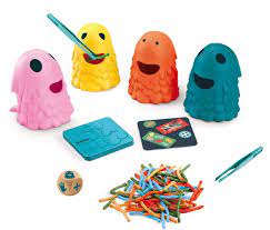 Ogni giocatore prende un mostro ed una pinza. Le carte “sfida” e le corde sono poste al centro del tavolo. Si gira una carta “sfida”. Contemporaneamente, i giocatori devono prendere, con le loro pinze, le corde corrispondenti agli oggetti indicati sulla carta e farli scivolare nella bocca del loro mostro. Il primo a riuscirci vince la carta.