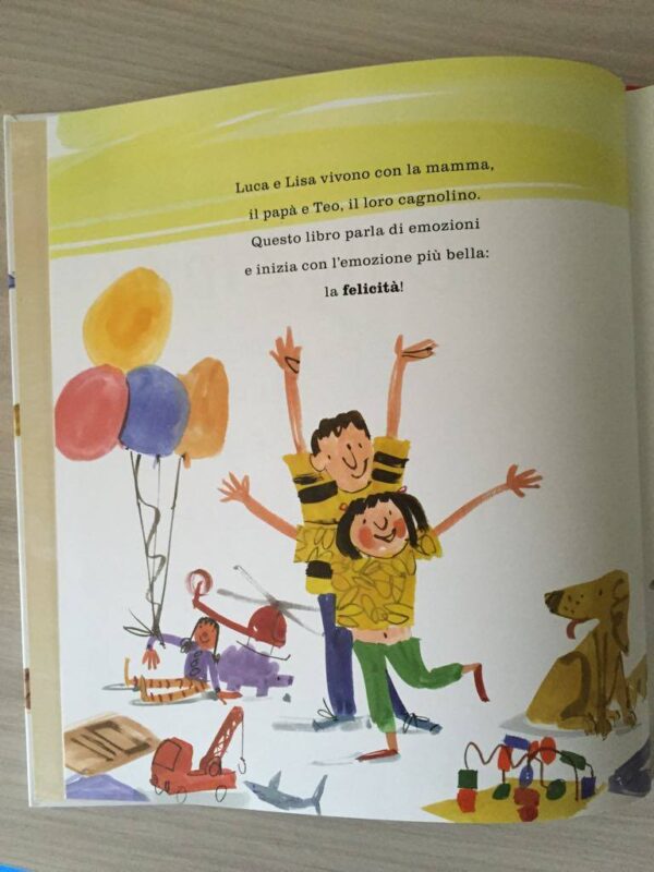 Protagonista una famiglia di 4 persone e un cagnolino, qualcosa con cui quasi tutti riescono ad identificarsi. Questo testo rappresenta un validissimo aiuto per i genitori che vogliono dare un nome, assieme ai propri figli, a tutte le emozioni da cui i bambini si sentono avvolti durante la giornata e a spiegare anche alcune reazioni dei grandi.