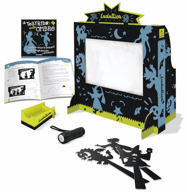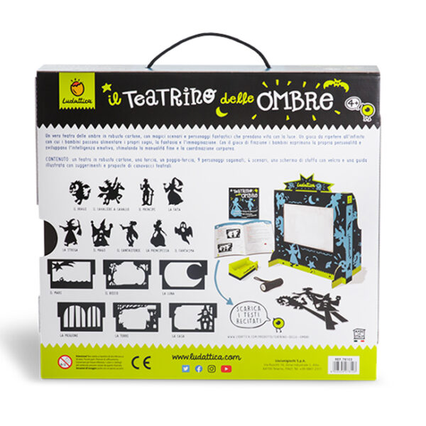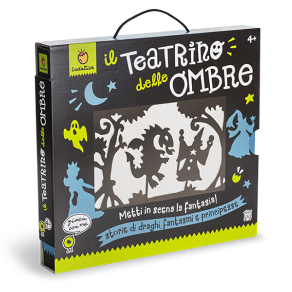 Un vero teatro delle ombre con magici scenari e personaggi fantastici che prendono vita con la luce! Con il gioco della finzione i bambini esprimono la propria personalità e sviluppano l’intelligenza emotiva, stimolando la manualità fine e la coordinazione corporea. Inoltre, tante storie da mettere in scena per alimentare sogni, fantasia e immaginazione!