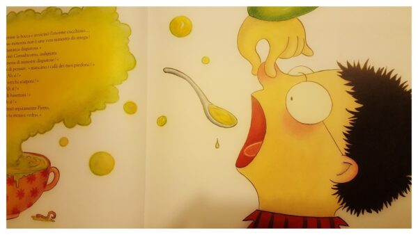 Il piccolo Pietro aveva già messo nel sacco la terribile Cornabicorna, l’implacabile dispensatrice di disgustose minestrine. La vecchia strega, però, non era davvero scomparsa: si era solo nascosta, rimpicciolendosi fin quasi a scomparire, pregustando il momento della rivincita. E quel momento arriva! Pietro si ritrova bloccato su una sedia, costretto a ingurgitare una tremenda minestra di lingue di rana, sputazzi di ranocchio, scorzetta di rospaccio. Cosa inventerà questa volta per salvarsi?
