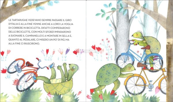 Una sensazionale gara di corsa in bicicletta fra tartarughe, in cui i corridori si appisolano, i giudici si addormentano, il pubblico ronfa della grossa… Una noia mortale? No, una divertentissima storia di Gianni Rodari!