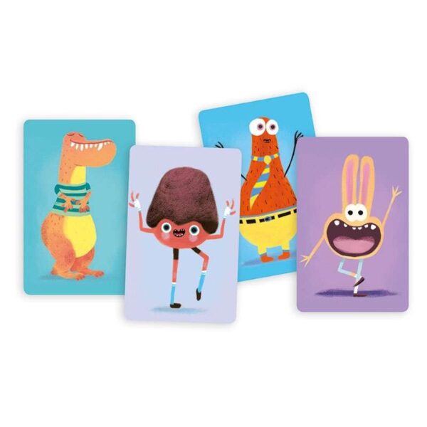 Si dispongono 7 carte “mostro” in tavola, il resto costituisce il monte. A turno, i giocatori imitano la posa di un mostro a loro scelta e gli altri giocatori devono indovinare il più velocemente possibile di quale si tratta. Se la risposta è esatta, il giocatore vince la carta.