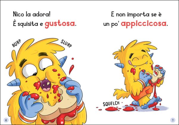 Nico è ghiotto di pane e marmellata, ma adesso la scuola è impiastricciata!