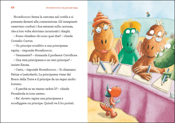 Ogni anno un draghetto delle scuole elementari viene scelto per affrontare una prova d’esame, e questa volta tocca a Nocedicocco. Quando, però, riceve la pergamena con il compito da portare a termine, Nocedicocco non riesce a credere a quello che gli viene chiesto: rapire una principessa e sconfiggere un principe… Ma anche se per una simile impresa è ancora troppo piccolo, il draghetto si lancia all’avventura. Per fortuna, gli amici Leopoldo e Oscar sono, come sempre, al suo fianco!