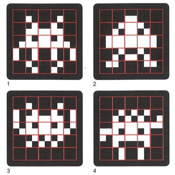 Concentrazione e riflessione sono le parole chiave per riuscire a realizzare l’extraterrestre del modello fornito… dovrete ricomporlo utilizzando tutte le 25 tessere da incastrare nella base 5×5. Indicato dai 7 anni in su, include 1 base per comporre, 30 modelli e 25 tessere tangram.