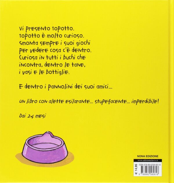 La storia è deliziosa e illustrata molto bene. Il messaggio è immediato e chiaro per i bimbi che si divertono ad aprire e chiudere le alette per scoprire cosa c’è nei vari pannolini.