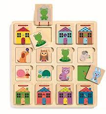 Gioco di nascondino. Il bambino indovina la casa di ogni animale grazie agli indizi.