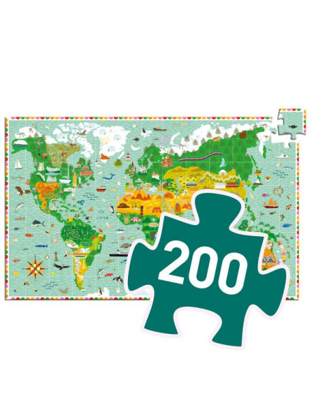 Un grande puzzle per imparare la geografia divertendosi, composto da 200 pezzi in cartoncino robusto, che illustra gli oceani e tutti gli animali del mondo.