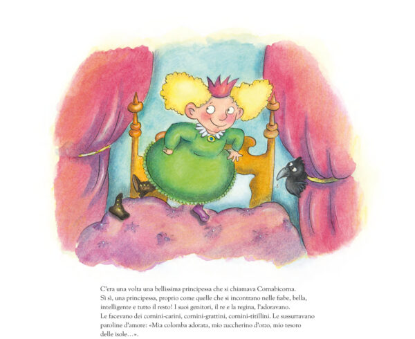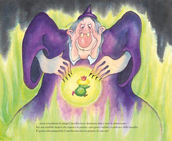Chi sarà mai questa piccola principessa, questa dolce bambina tanto amata dai suoi genitori? Ma è la piccola Cornabicorna! Laggiù, nel suo castello, la principessa è adorata da tutti e non sospetta che la perfida zia Cracrabicracra, che vive isolata nella torre più lontana, abbia deciso di passare proprio a lei i suoi tremendi poteri.