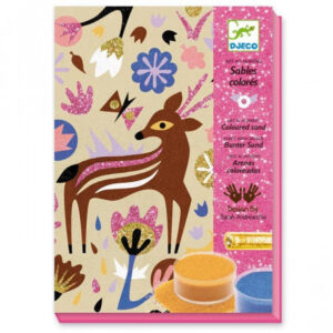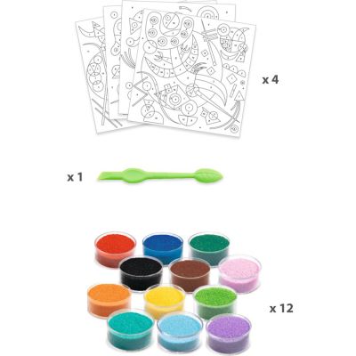 – Il bambino posiziona il suo dipinto nella scatola, rivela le zone preincollate, quindi le cosparge di sabbia seguendo il codice colore indicato nel libretto.