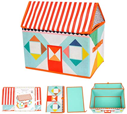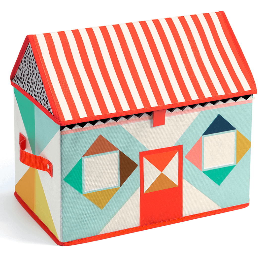 Questa deliziosa scatola a forma di casetta è un ottimo contenitore per riporre i giochi nella stanza dei vostri bambini in modo ordinato ed elegante.
