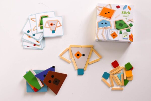 Puoi creare gli animali sulle carte usando i bastoncini di legno? Una giocosa attività educativa per sfidare i più piccoli. Ottimo per costruire il riconoscimento della forma e la consapevolezza spaziale. Contiene 38 pezzi con 16 carte da ricreare.