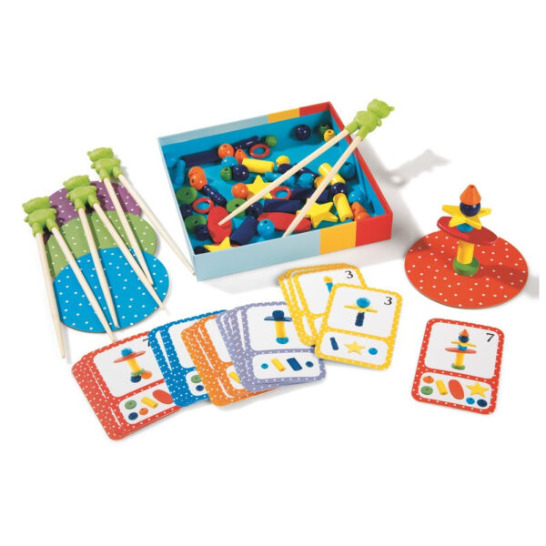 Gioco di manipolazione per bambini che sfrutta le abilità manuali e la concentrazione per costruire torri impossibili …